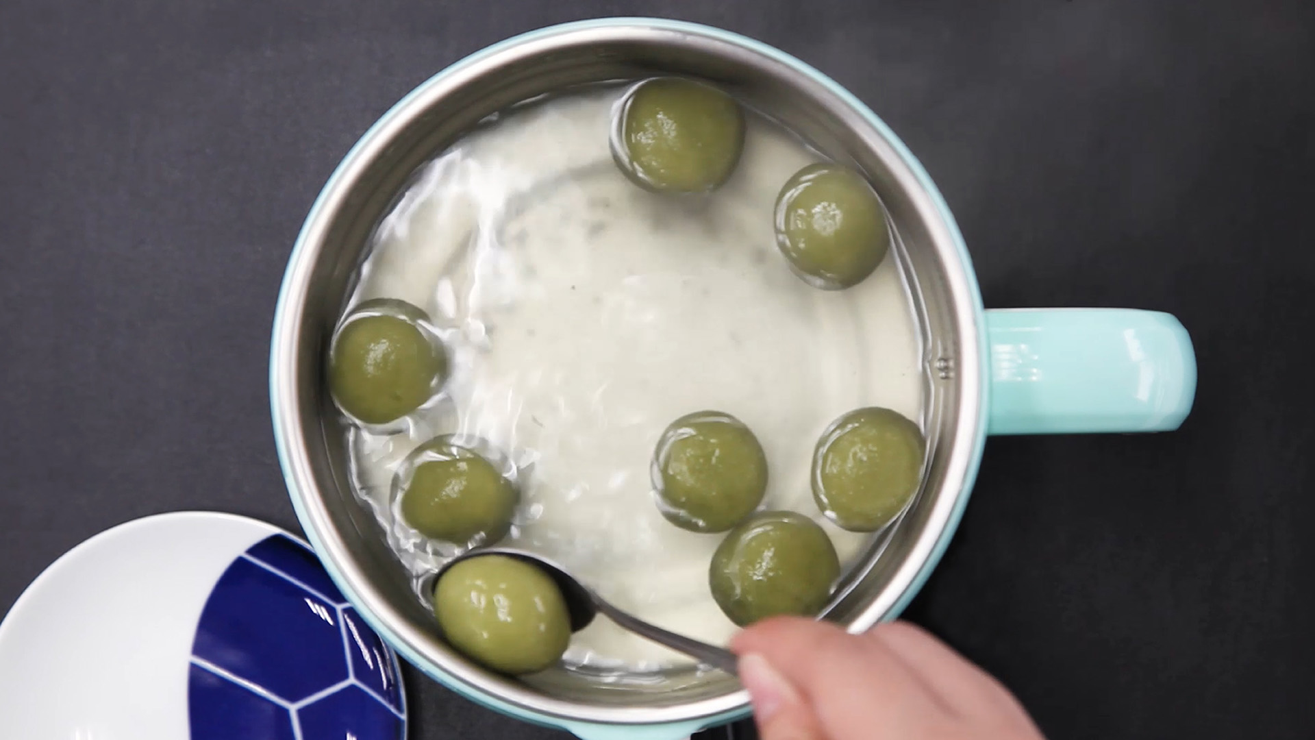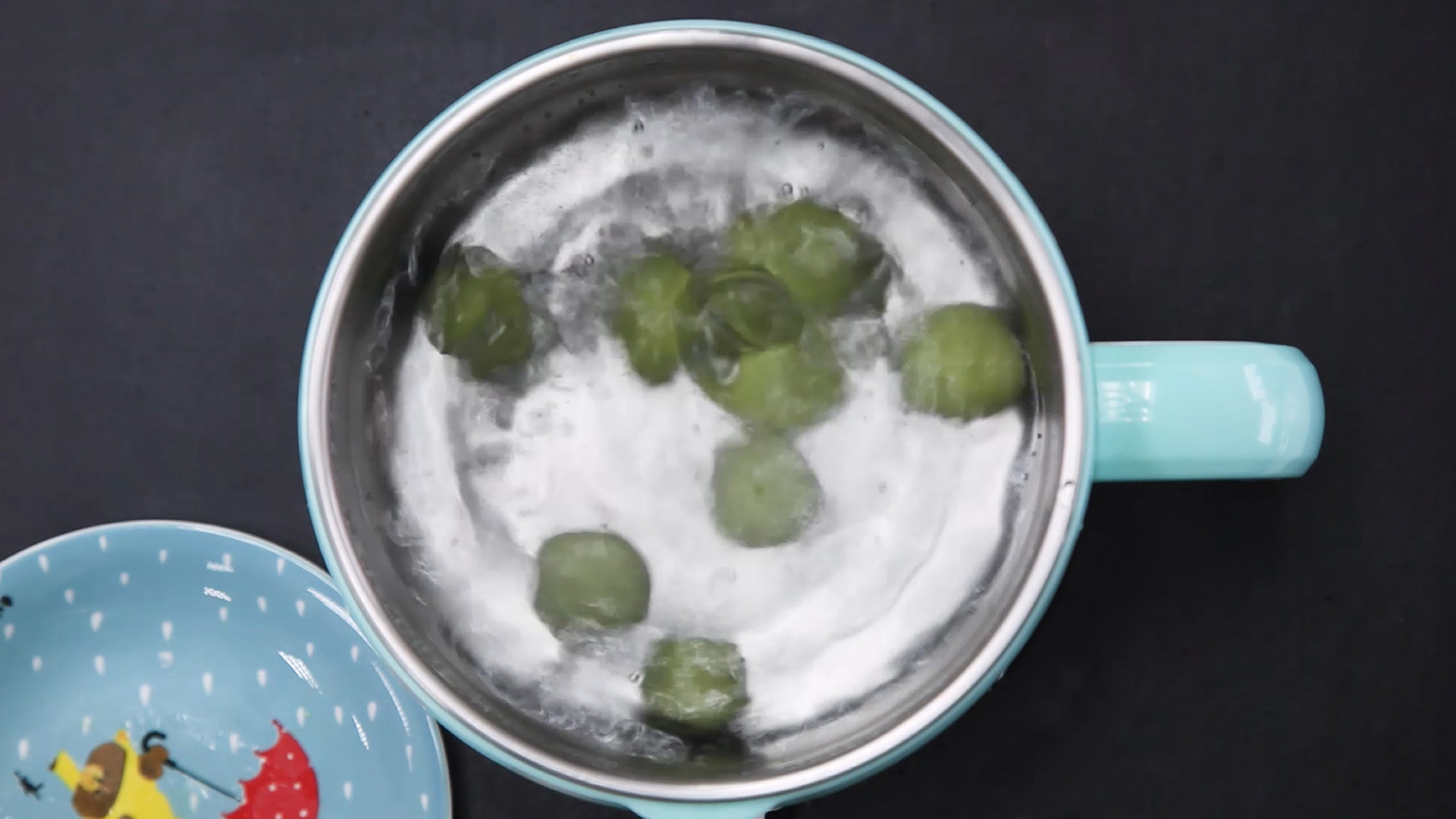 煮至糰子浮出水面,並用湯匙或篩子撈起直接放入冰水中