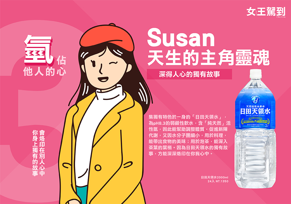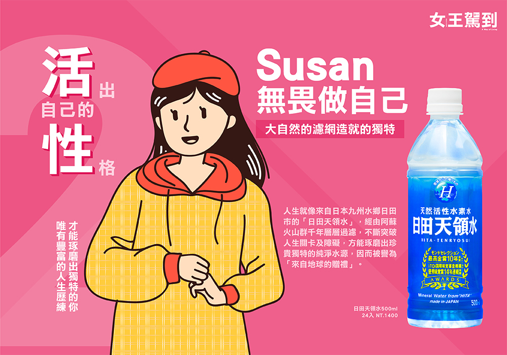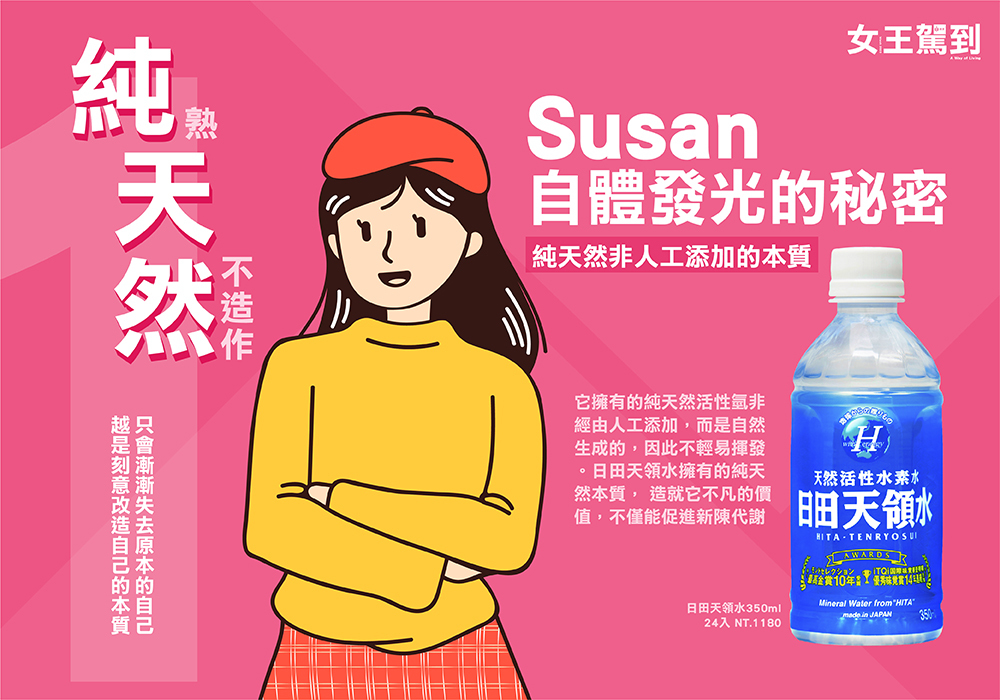 就像我常常喝的「日田天領水」,它擁有的純天然活性氫非經由人工添加,而是自然生成的,因此不輕易揮發。日田天領水擁有的純天然本質, 造就它不凡的價值,不僅能促進新陳代謝,也能幫助調整體質。